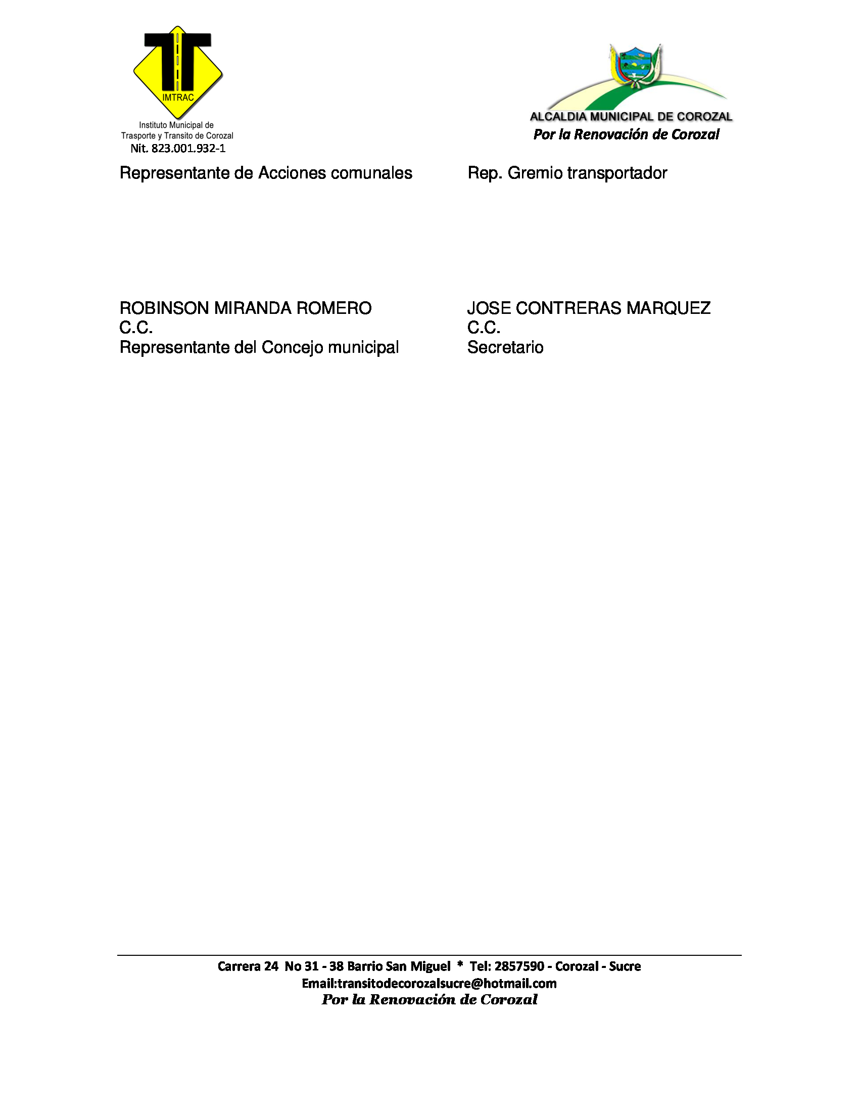 Informe de Sistema de Control Interno y Control Interno Contable de Instituto Municipal de Transportes y Tránsito de Corozal